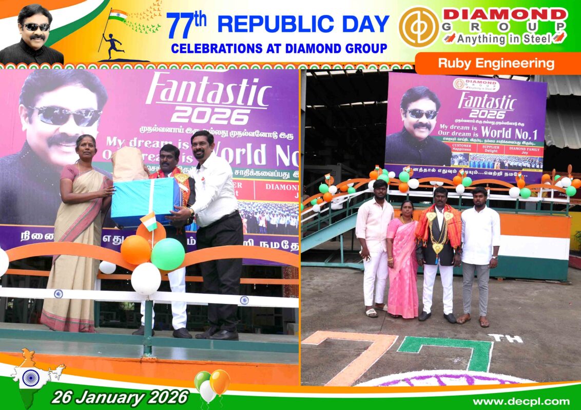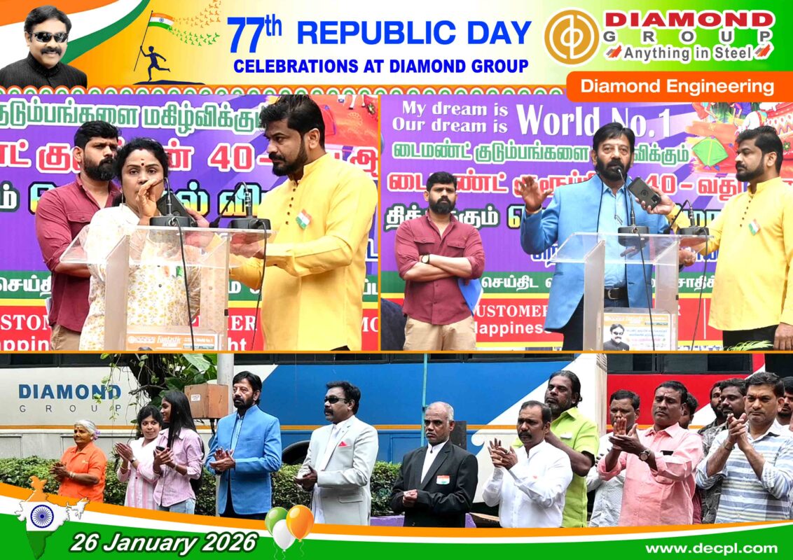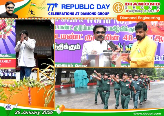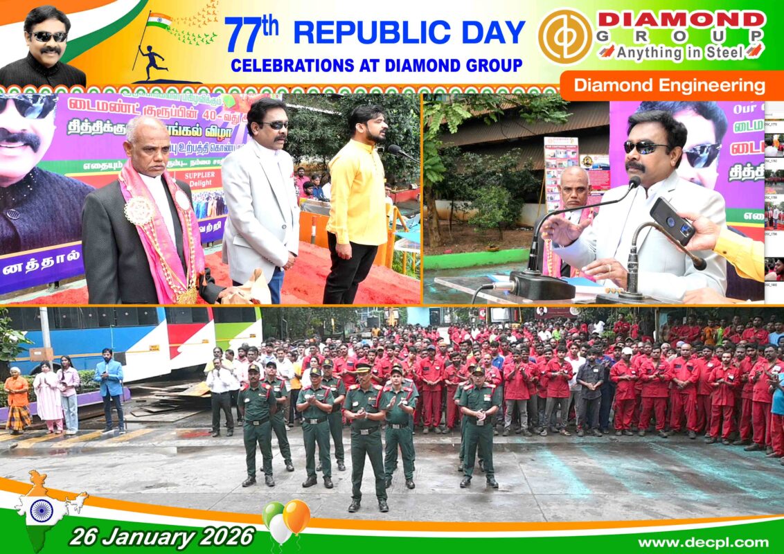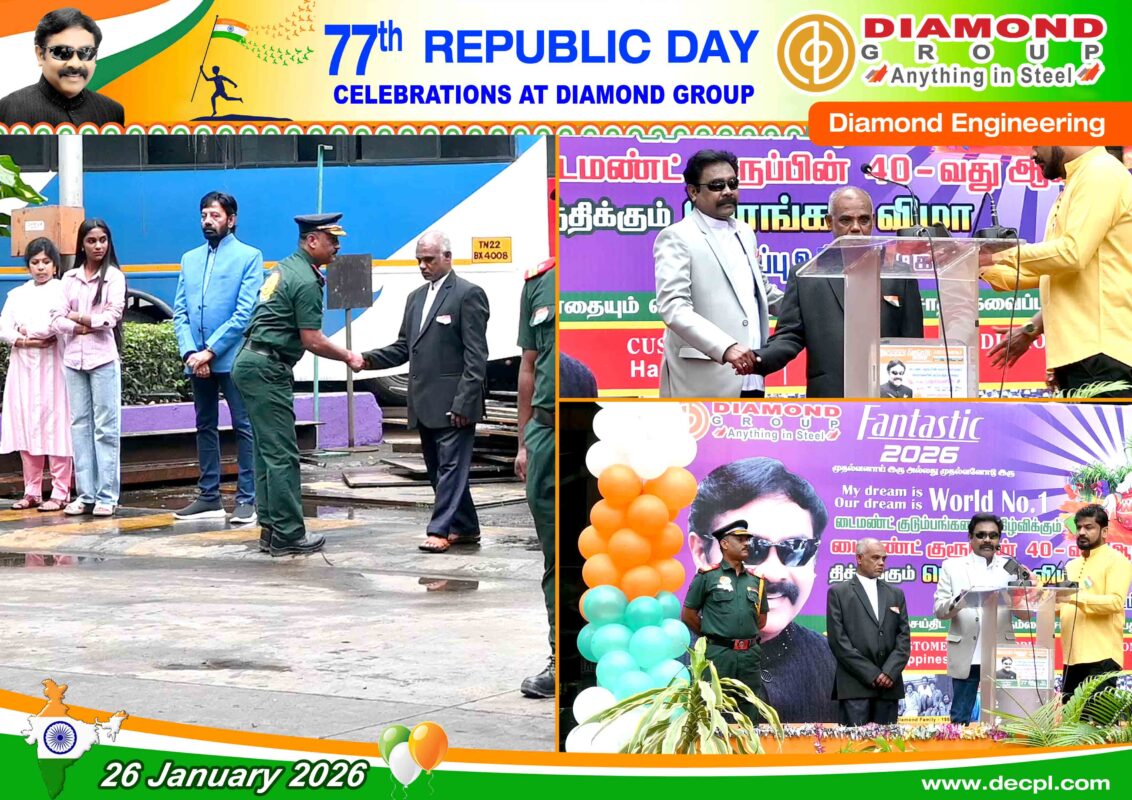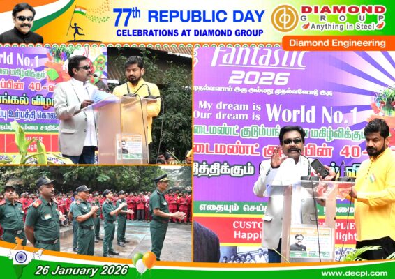 All, Celebration 77th Republic Day Celebration at Diamond Group on 26 January 2026 Posted on January 26, 2026January 26, 2026 by diamond 26 Jan diamond Industrial Visit – SRM Institute of Science and Technology, Kattankulathur, Tamil Nadu – 603203 on 7th January 2026 Loesche Dalmia Belgum & Parewar CS – Mill Body & Mill Stand Dispatched