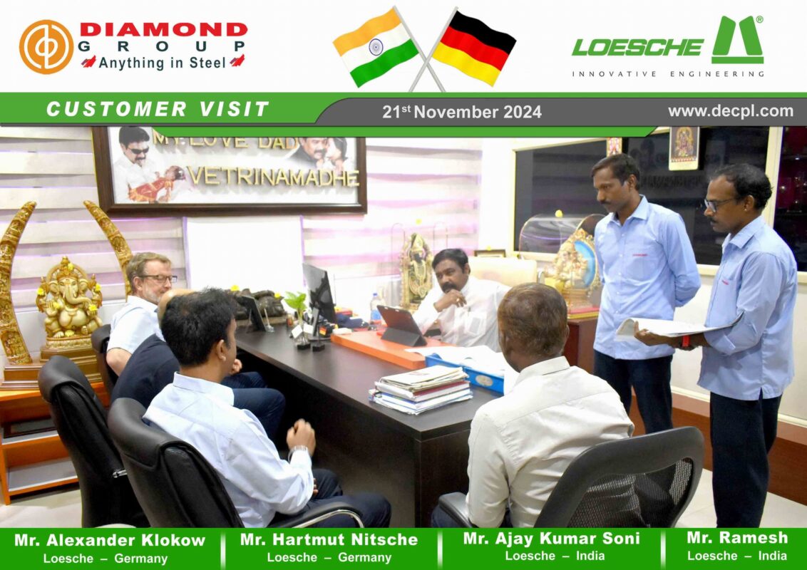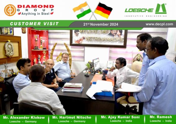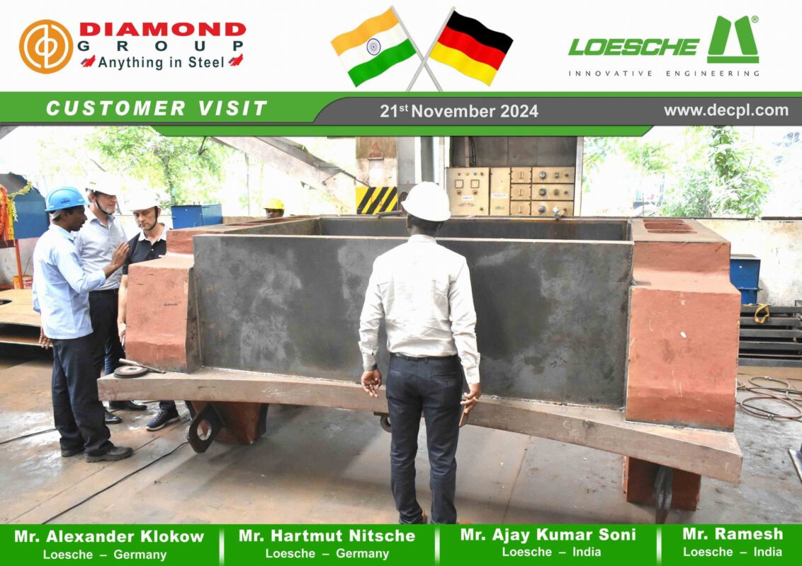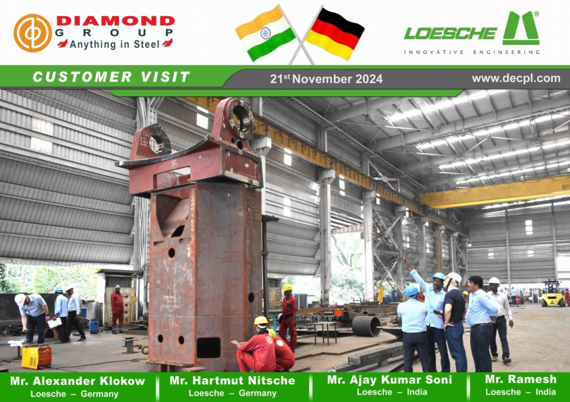 Customer Visit Customer Visit – Loesche – Germany – on 21st November 2024 Posted on November 22, 2024November 22, 2024 by diamond 22 Nov diamond Beumer Group – Jindal Paradip Port – Stacker Cum Reclaimer Despatch Herrenknecht Chennai S-1400, 1410 & 1411 – Segment Feeder & G4, G5 Gantry Structure Despatch