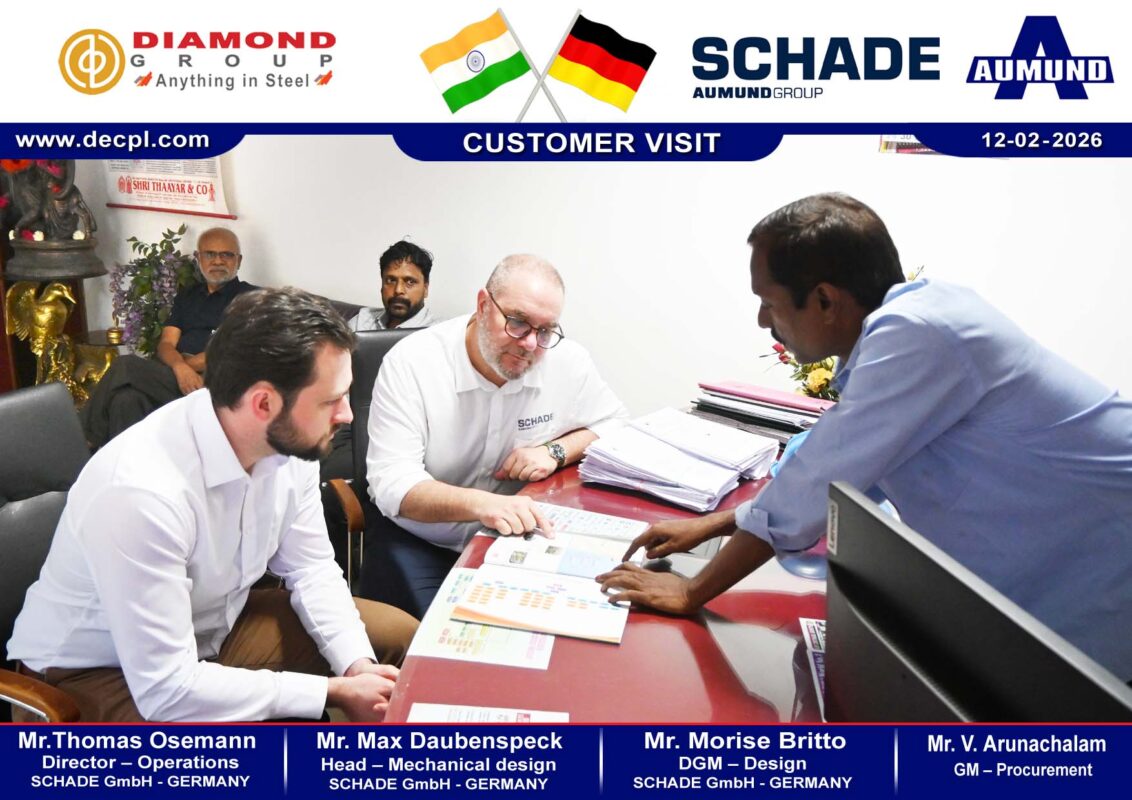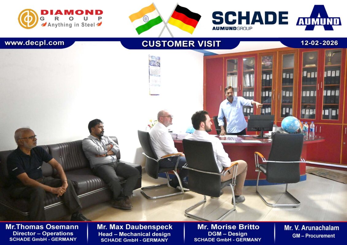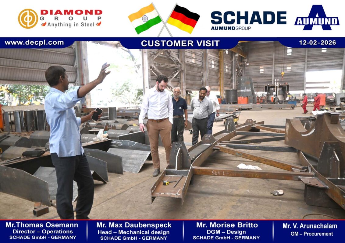 All, Customer Visit Customer Visit SCHADE GmbH – Germany on 12 February 2026 Posted on February 13, 2026February 13, 2026 by diamond 13 Feb diamond TKIL Industries Pvt Ltd – Adani Krishnapatnam Port – Steel Structure Parts Despatches Customer Visit – M/s. AUMUND – GERMANY on 12 February 2026