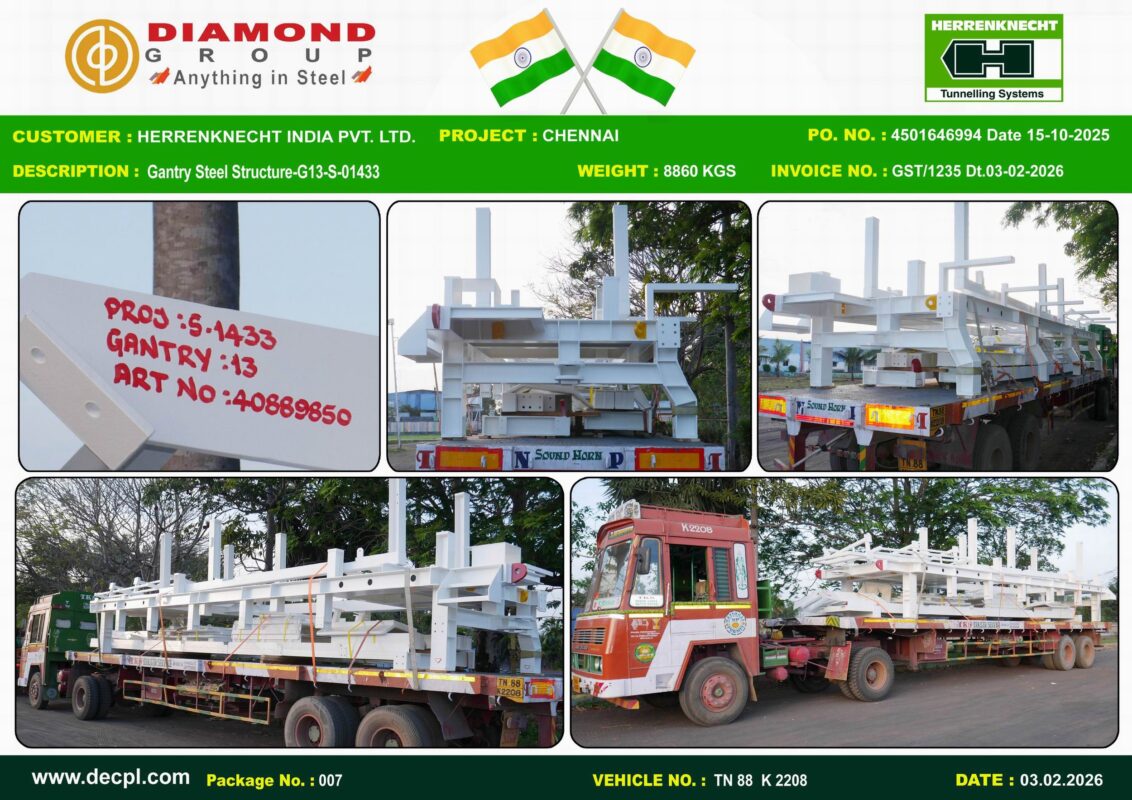This entry was posted in All, Despatches and tagged #decpl, #despatch, #diamondengineering, #diamondgroup, #dispatch, #Gantrysteelstructure, #Herrenknecht.