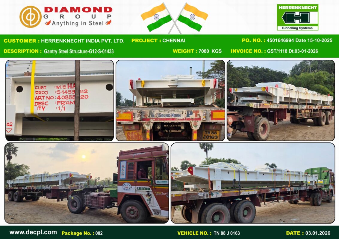 This entry was posted in All, Despatches and tagged #decpl, #diamondengineering, #diamondgroup, #dispatch, #gantrystructure, #Herrenknecht, #steelfabrication, #SteelStructures.