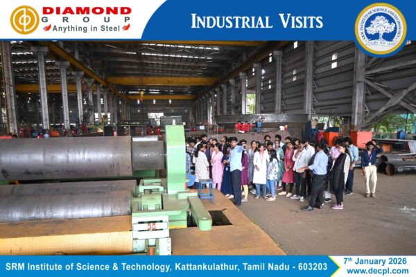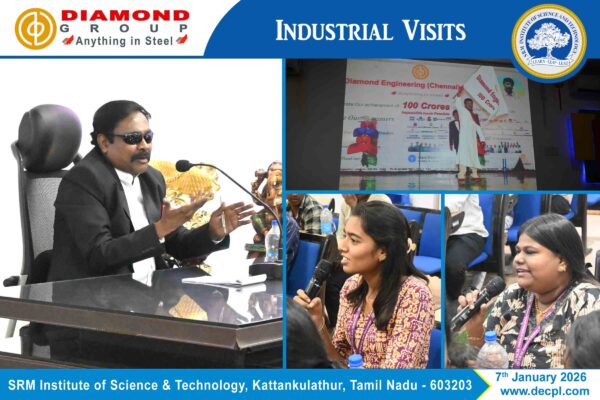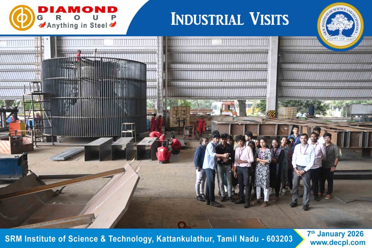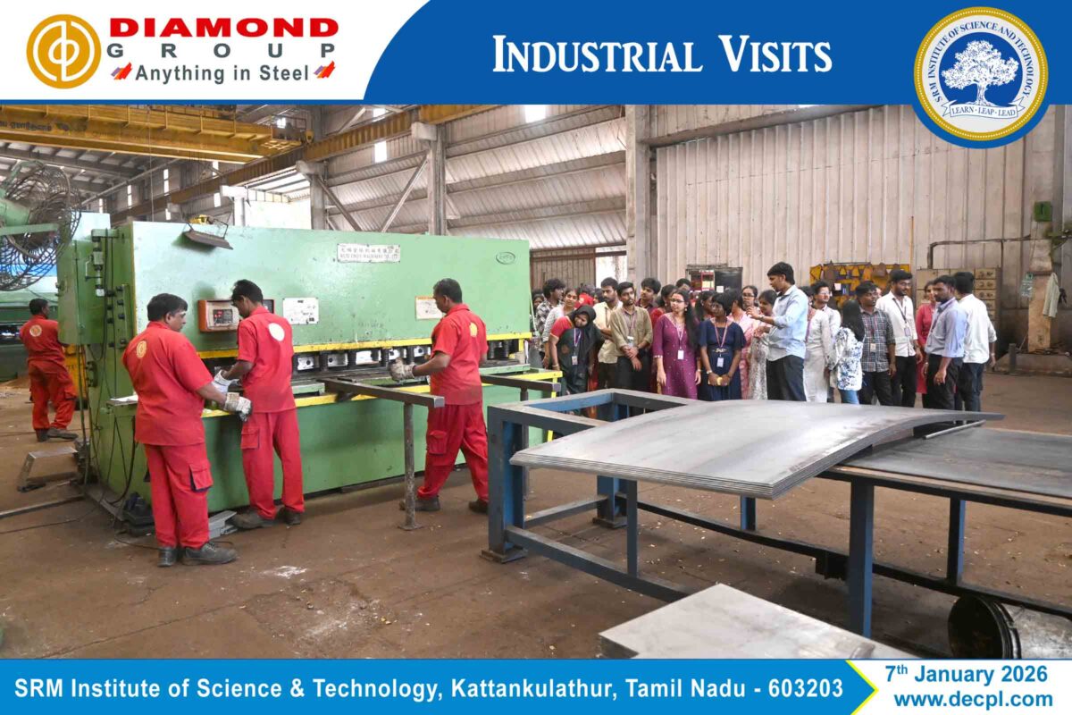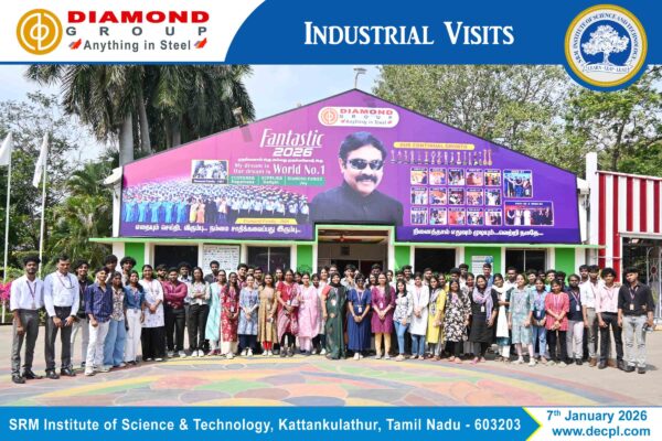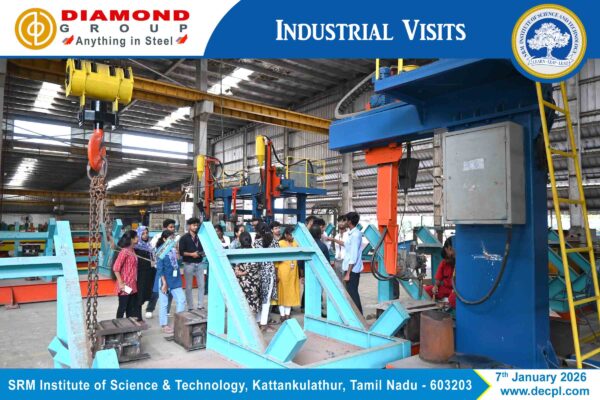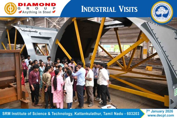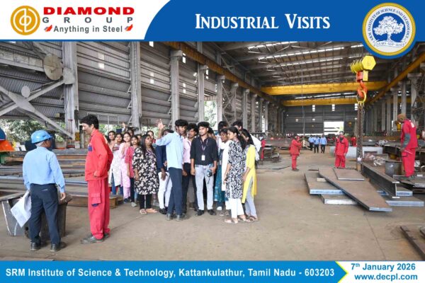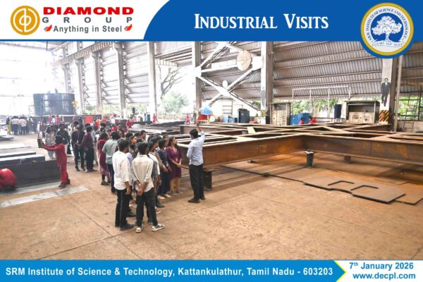 All, Industrial Visit Industrial Visit – SRM Institute of Science and Technology, Kattankulathur, Tamil Nadu – 603203 on 7th January 2026 Posted on January 8, 2026January 8, 2026 by diamond 08 Jan diamond TKIL – Adani_Krishnapatnam Port – Steel Structure Parts, Galleries & Trestles Despatch 77th Republic Day Celebration at Diamond Group on 26 January 2026
