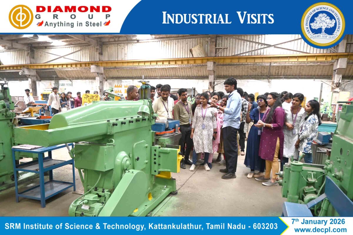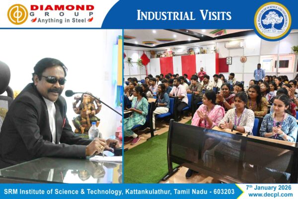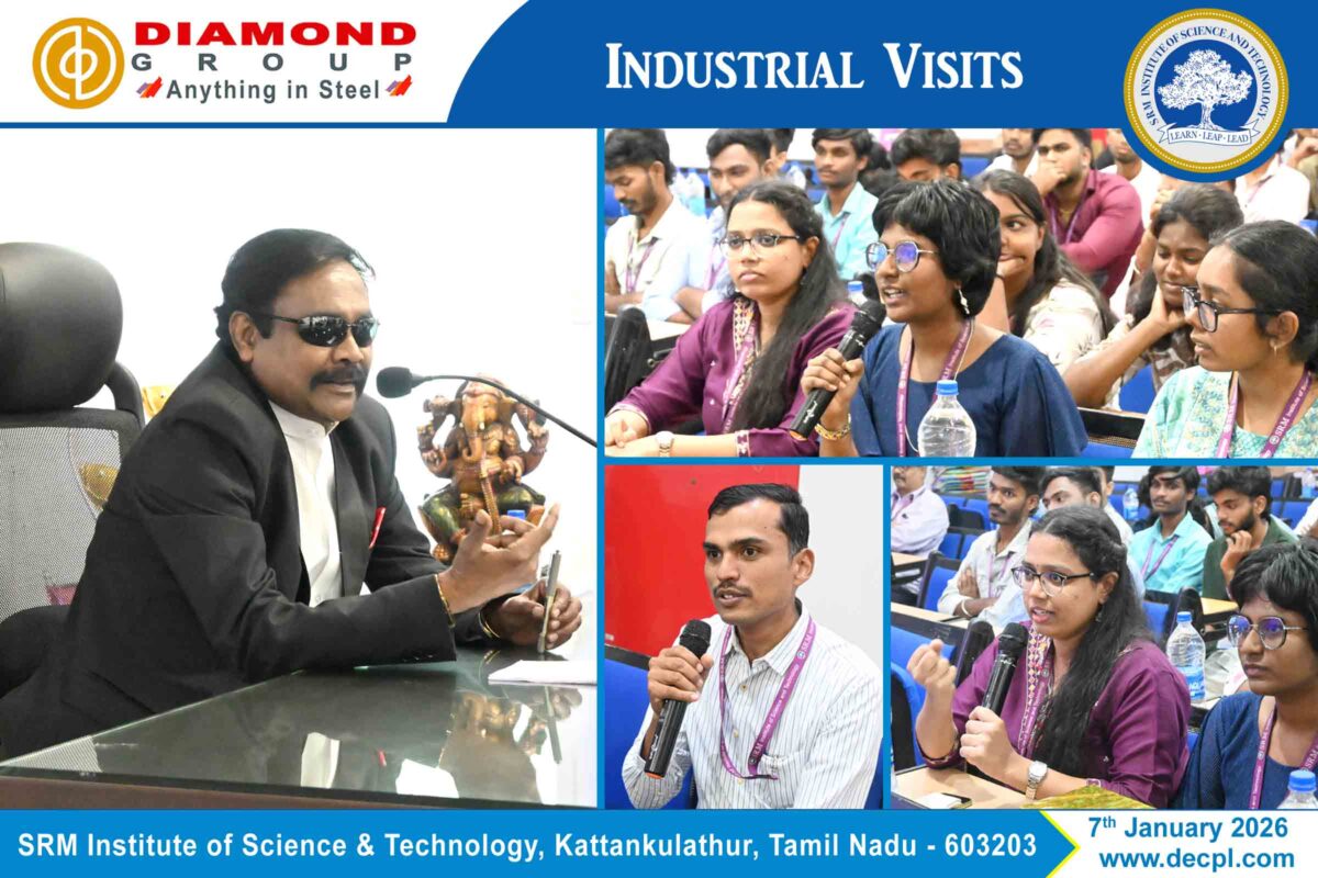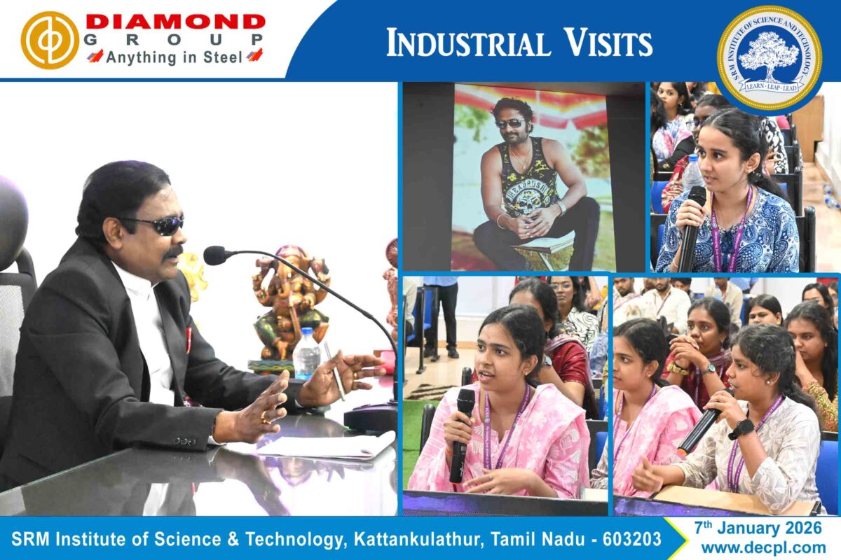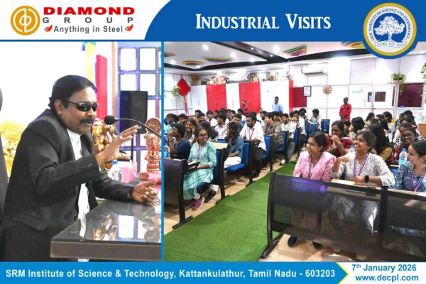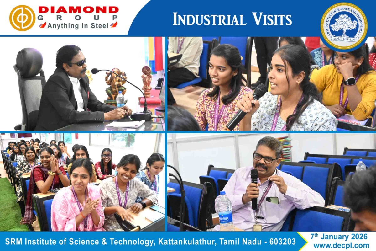All, Industrial Visit Industrial Visit – SRM Institute of Science and Technology, Kattankulathur, Tamil Nadu – 603203 on 7th January 2026 Posted on January 8, 2026January 8, 2026 by diamond 08 Jan diamond TKIL – Adani_Krishnapatnam Port – Steel Structure Parts, Galleries & Trestles Despatch 77th Republic Day Celebration at Diamond Group on 26 January 2026