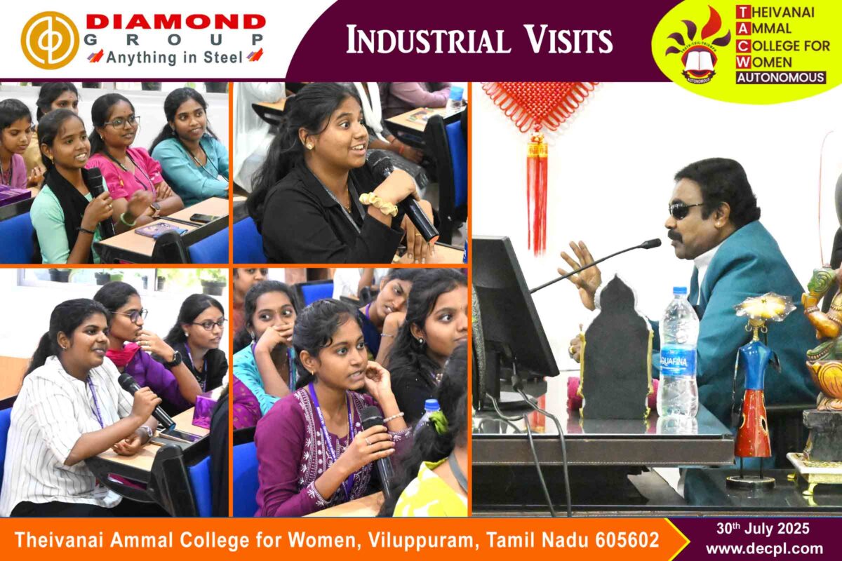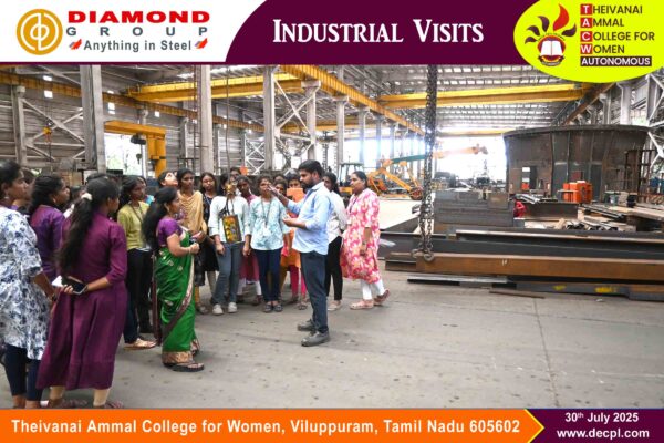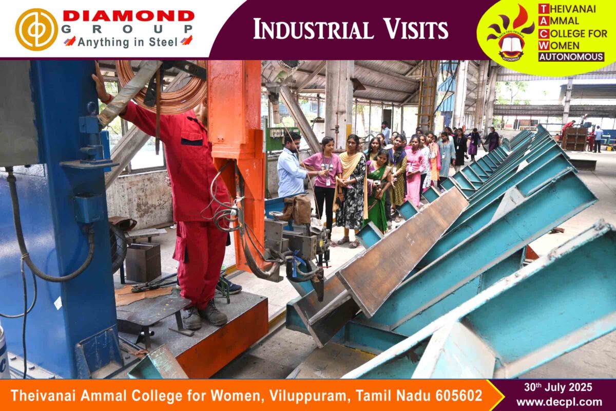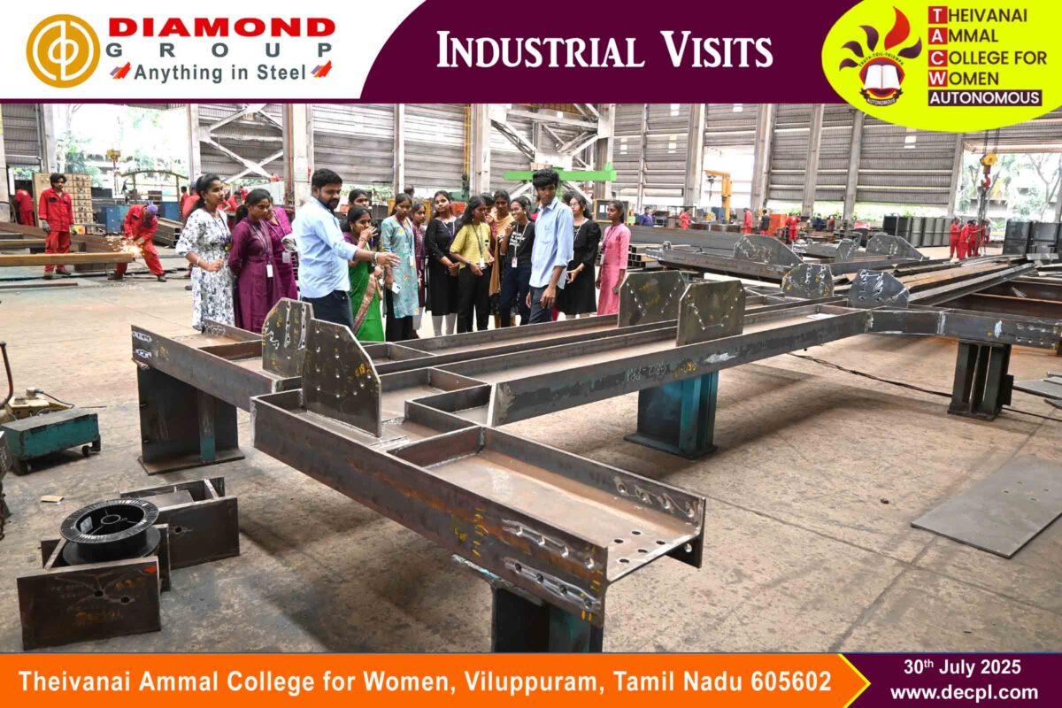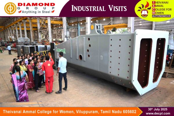 Industrial Visit Industrial Visit – Theivanai Ammal College for Women, Viluppuram, Tamil Nadu – 605602_30 July 2025 Posted on July 31, 2025August 9, 2025 by diamond 31 Jul diamond Zamil Steel – L&T Toyota _ Column – Box Section & Mezz Beam – H Section Despatch LNV Tech _ Ambuja Cement – Maratha Cement Steel Structural Fabrication Despatch