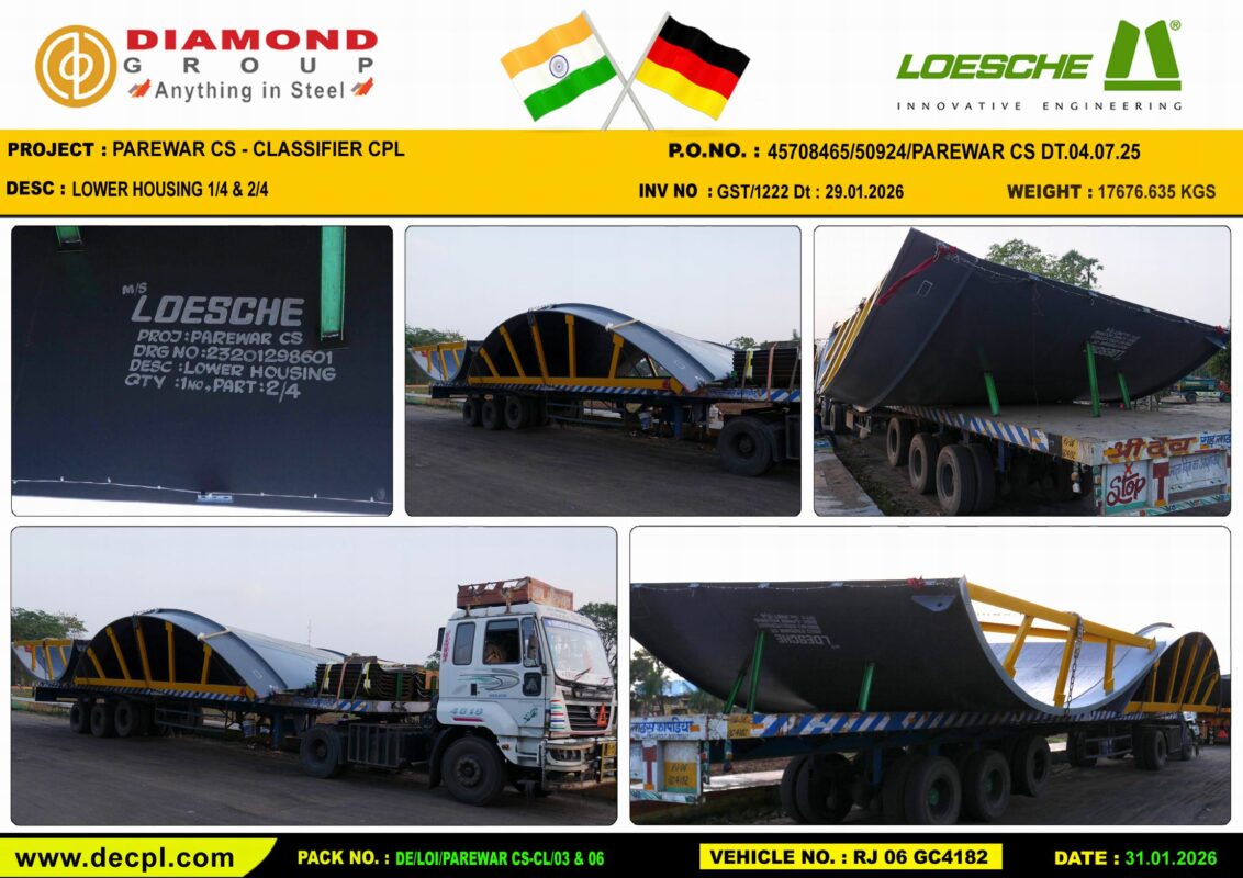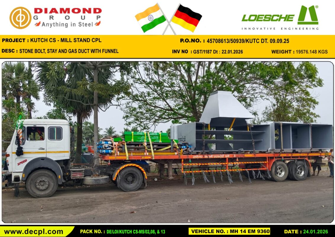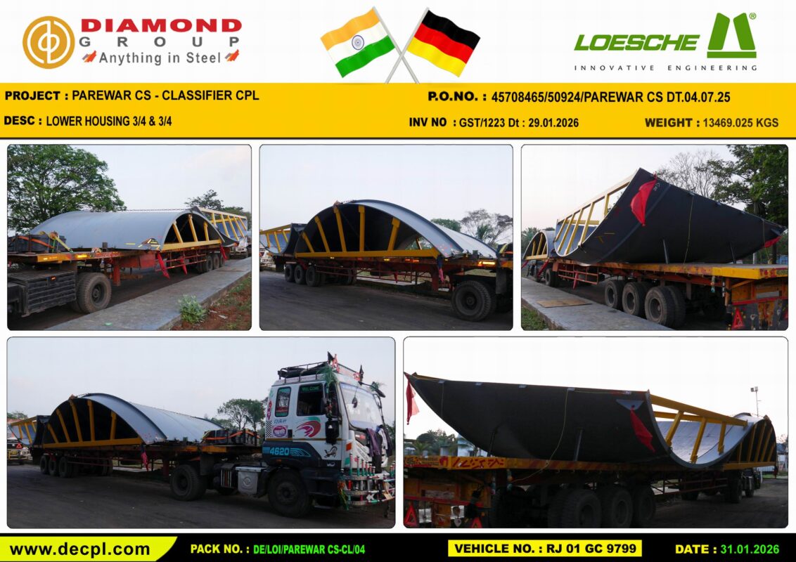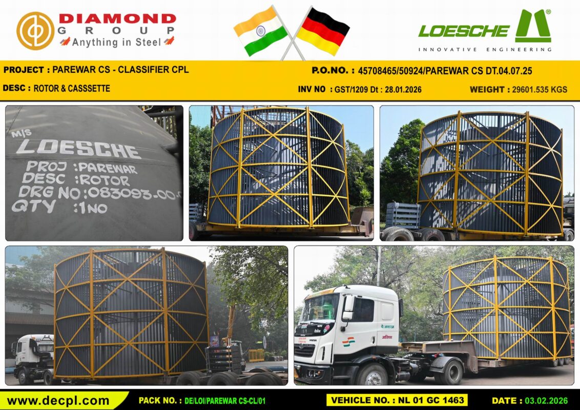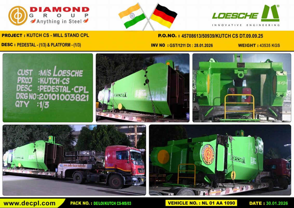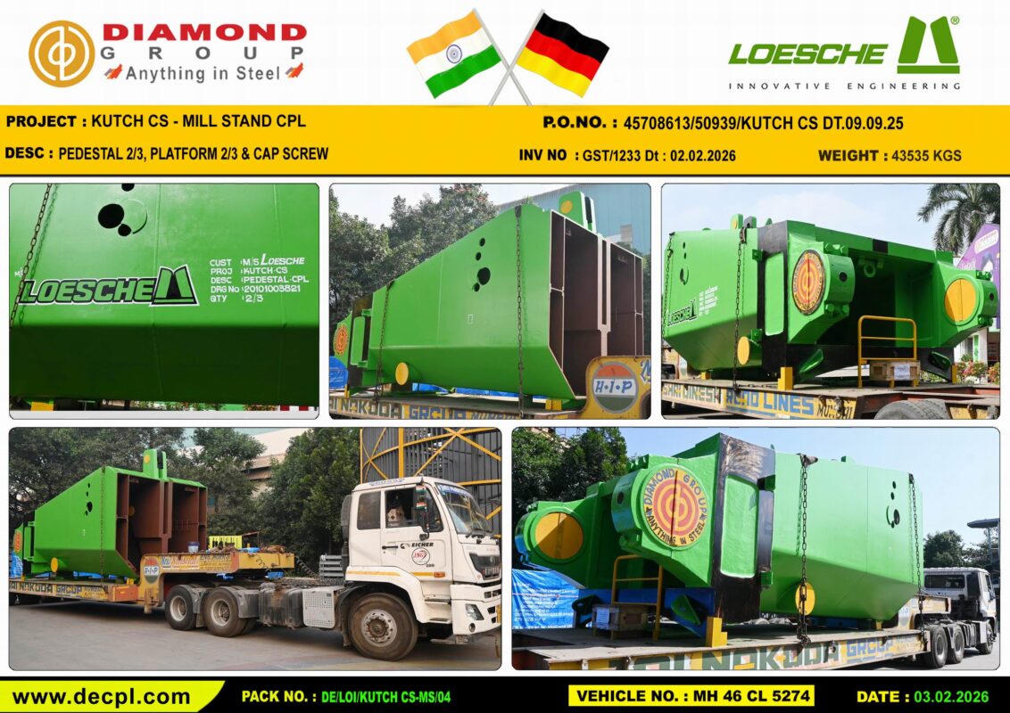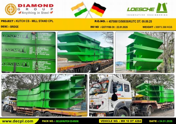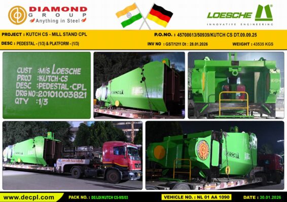 All, Despatches Loesche – Kutch CS -Mill Stand & Parewar CS Classifier Despatch Posted on February 4, 2026February 4, 2026 by diamond 04 Feb diamond Customer Visit – M/s. LNV Technology – CHINA on 3rd February 2026 Eversendai_Chennai Airport – T2 Extension Project Secondary Truss Despatch