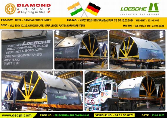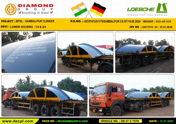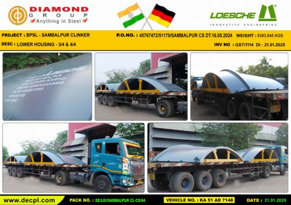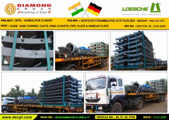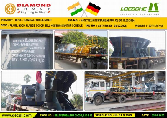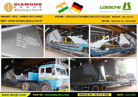 Despatches Loesche – Sambalpur Clinker Mill Classifier – Rotor, Grit Funnel, Lower Housing, Guide Vane Carrier, Frame, Hood, Scoop, Bell Housing, Motor Console, Base, Upper Housing Base & Mill Body Despatch Posted on February 18, 2025February 18, 2025 by diamond 18 Feb diamond Loesche JK Bihar Classifier CPL Despatch Herrenknecht Chennai S-1402 – G2 Gantry Structure Despatch