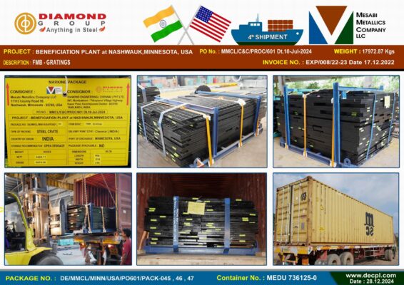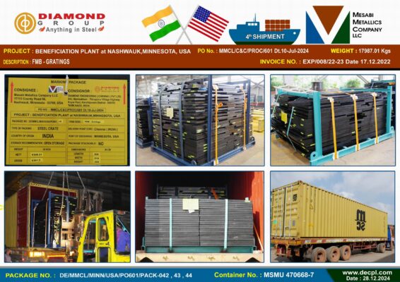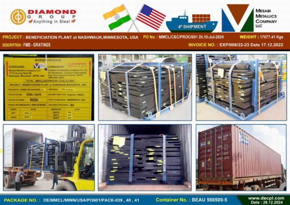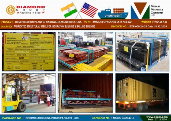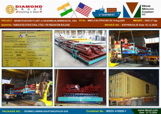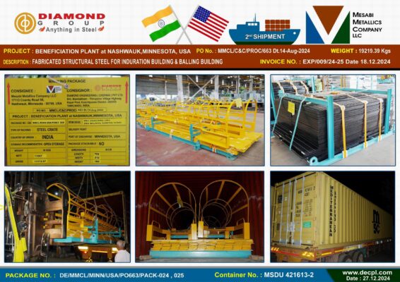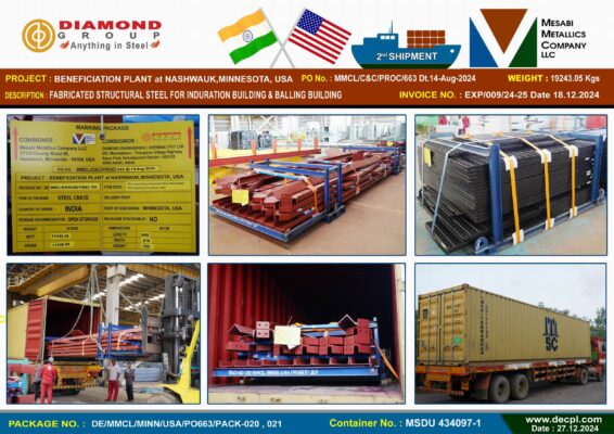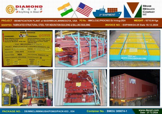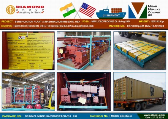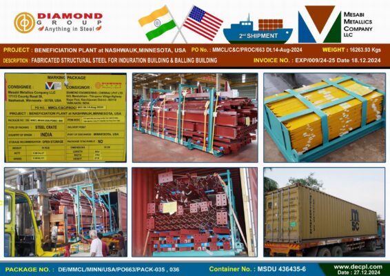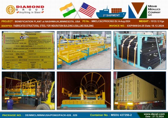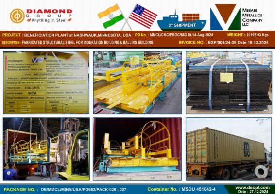 Despatches Mesabi Metallics Company LLC_ Beneficiation Plant at Nashwauk Minnesota , USA 2nd & 4th Shipment Container Despatch Posted on December 30, 2024December 31, 2024 by diamond 30 Dec diamond Customer Visit M/s. Sinoma & LNVT on 17 December 2024 1. Mr. Lv Changqing 2. Mr. R. Mathialagan 3. Mr. Yash Grover Our CMD’s Motivational Speech – Tamil Parindurai Vanikkam, at G.P.Janarajan Thirumana Mandapam, ECR-Sholinganallur Link Road, Akkarai, Chennai – 600119 on 28th December 2024