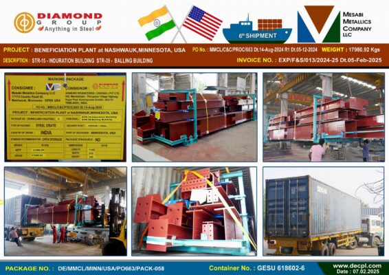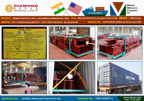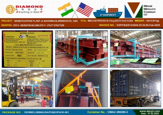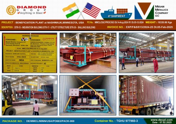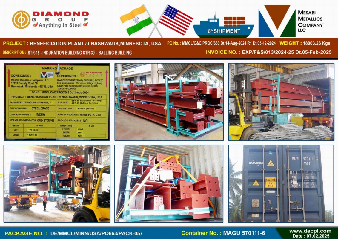 Despatches Mesabi Metallics Company LLC_ Beneficiation Plant at Nashwauk Minnesota , USA 6th Shipment Container Despatched Posted on February 8, 2025February 8, 2025 by diamond 08 Feb diamond Industrial Visit – Jeppiaar College of Arts and Science, OMR, Padur, Tamil Nadu 603103 on 5th February 2025 Our CMD ’s Motivational Speech – Mambakkam Vyaparigal Sangam 25th Velli Vizha at Sri Ganesan Mahal, Mambakkam Chennai – 600127 on 7th February 2025