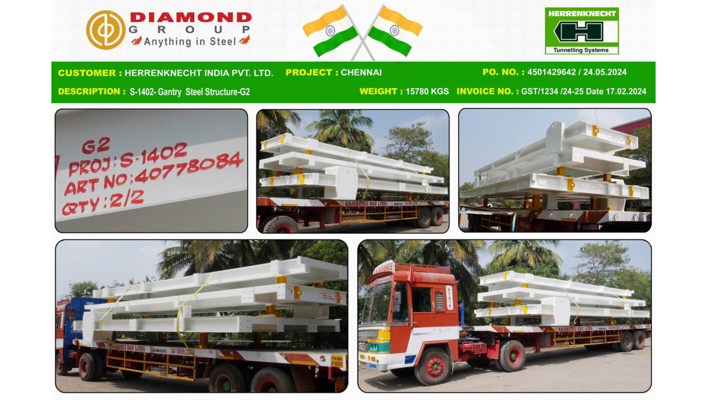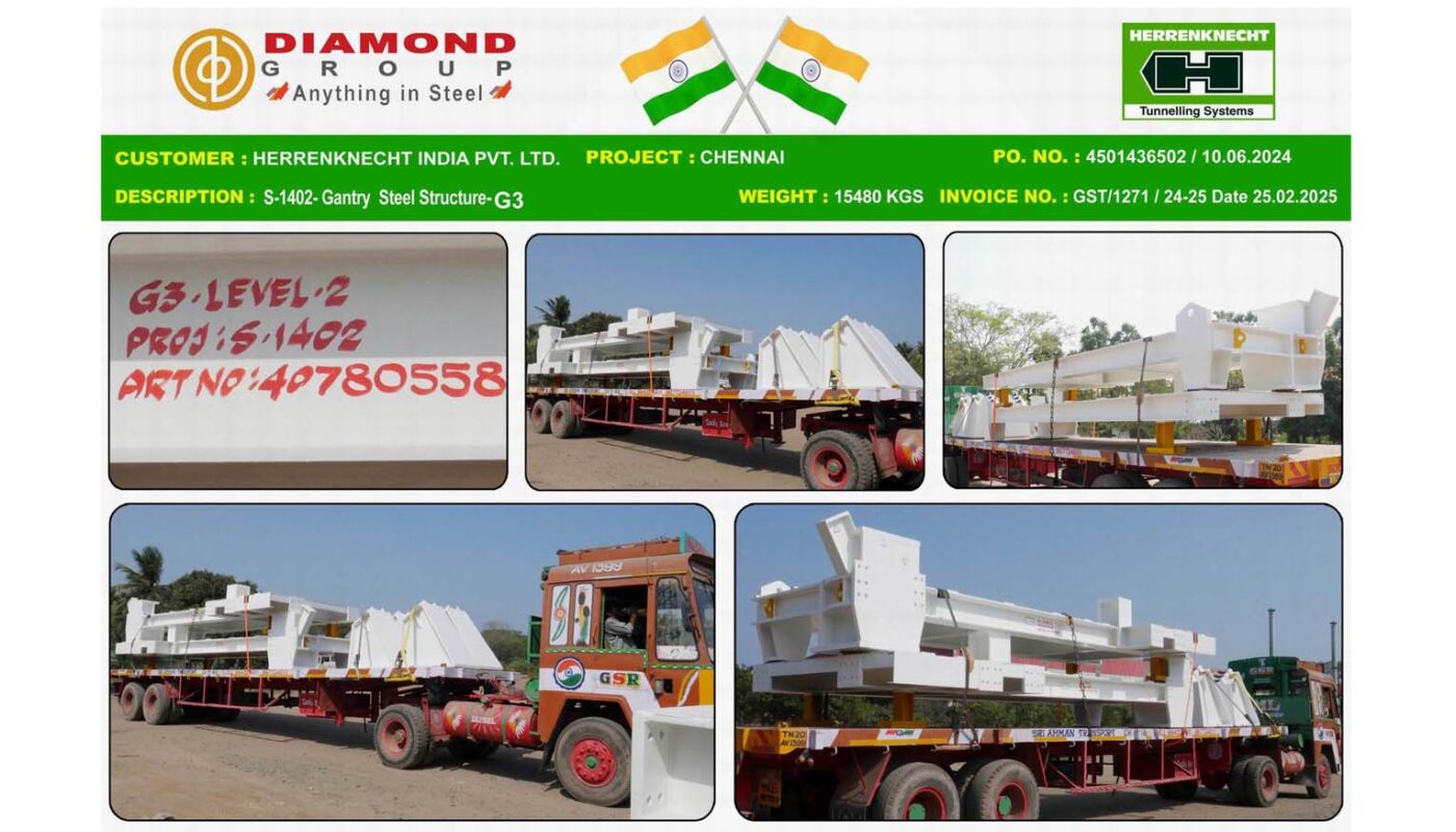 Despatches Herrenknecht Chennai S-1402 – G1 Gantry Structure Despatch Posted on February 12, 2025February 12, 2025 by diamond 12 Feb Continue reading →