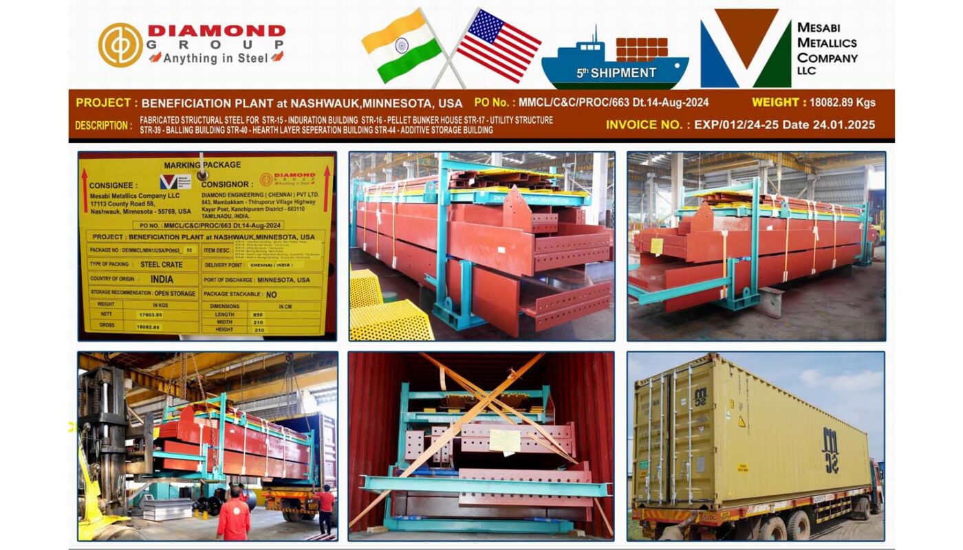 Despatches Mesabi Metallics Company LLC_ Beneficiation Plant at Nashwauk Minnesota , USA 5th Shipment Container Despatch Posted on January 25, 2025January 25, 2025 by diamond 25 Jan Continue reading →