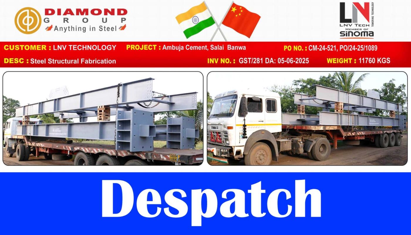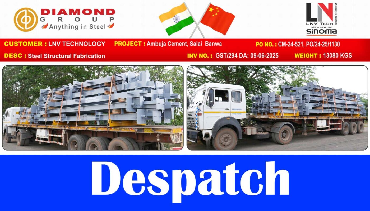 Despatches LNV Technology_Ambuja Cement Limited – Salai Banwa_Steel Structural Fabrication Despatch Posted on June 13, 2025June 13, 2025 by diamond 13 Jun Continue reading →
