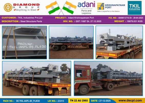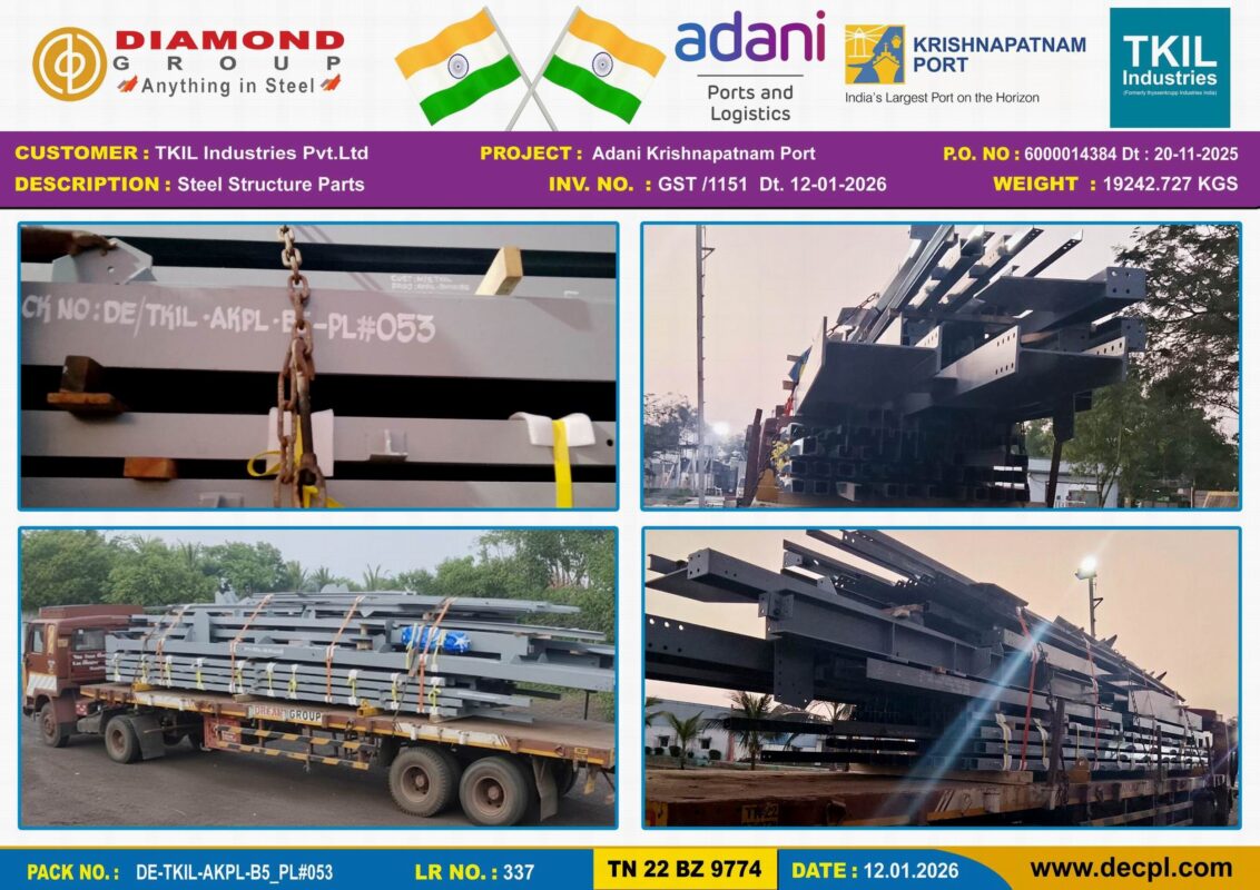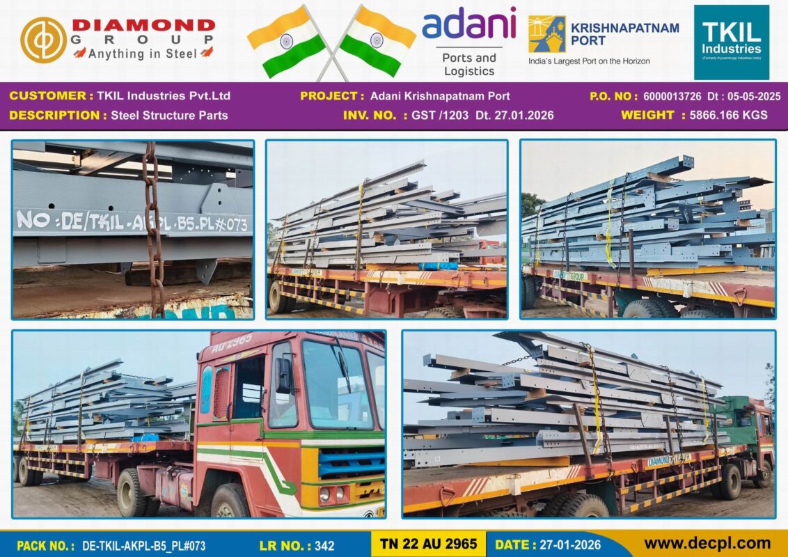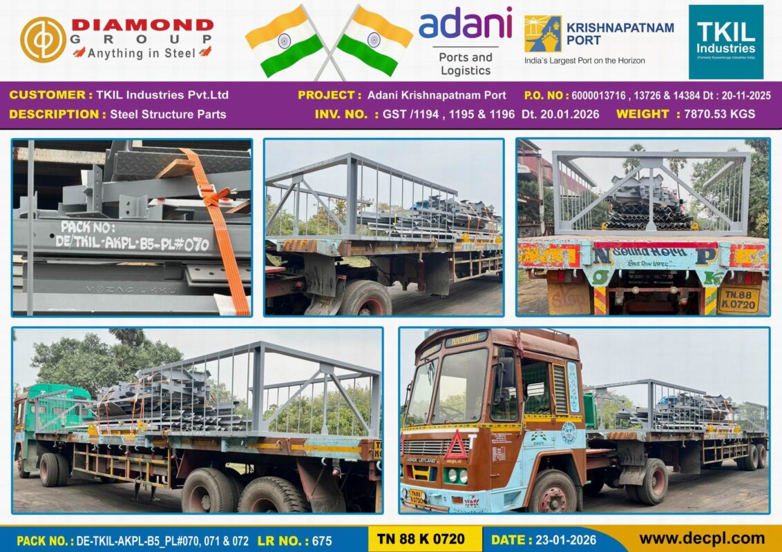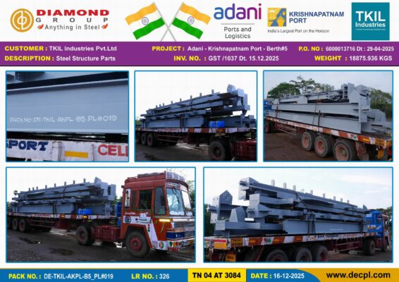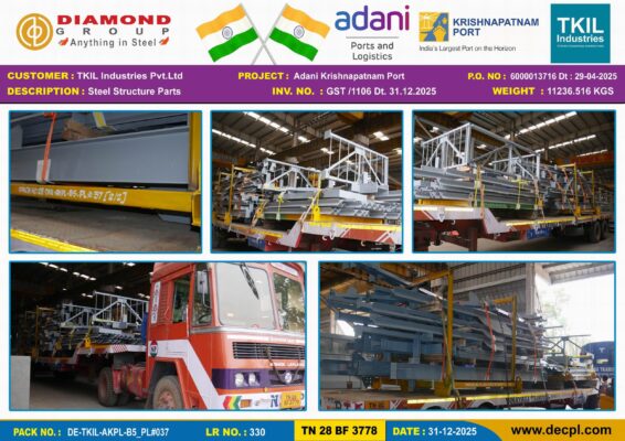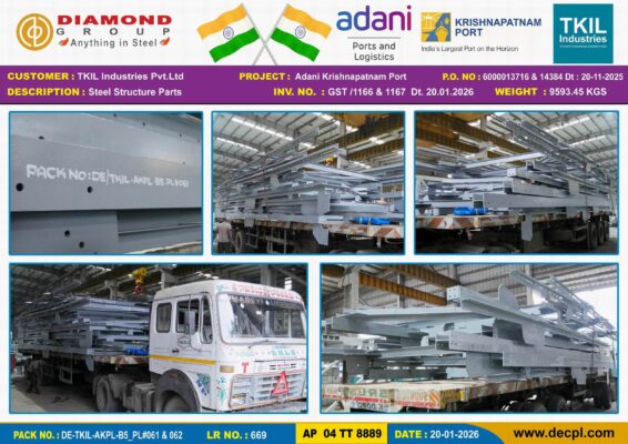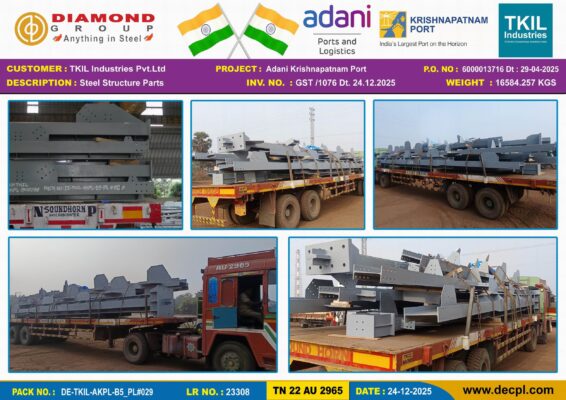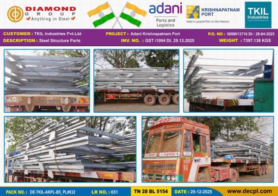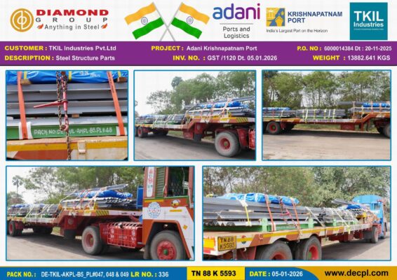 All, Despatches TKIL Industries Pvt Ltd – Adani Krishnapatnam Port – Steel Structure Parts Despatches Posted on February 7, 2026February 7, 2026 by diamond 07 Feb diamond Industrial Visit – SATHYABAMA College of Nursing, Rajiv Gandhi Salai, OMR, Chennai – 600119 on 4th February 2026 Customer Visit SCHADE GmbH – Germany on 12 February 2026