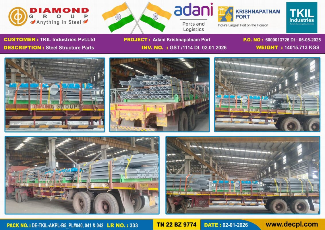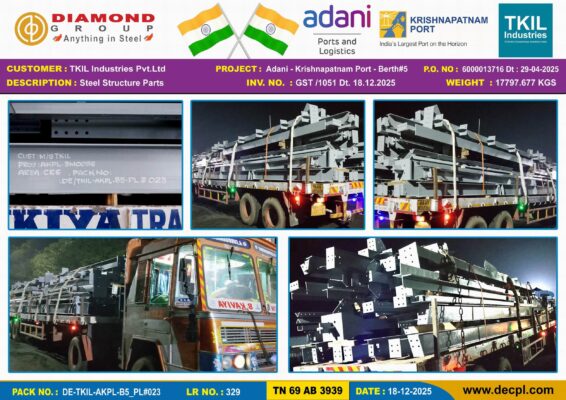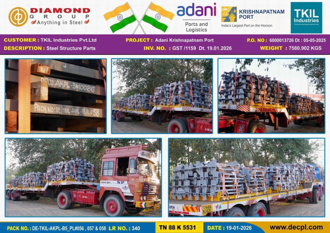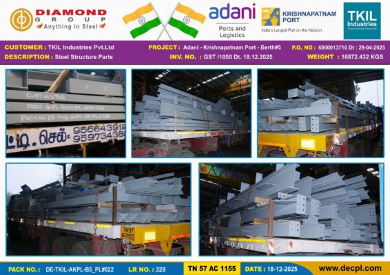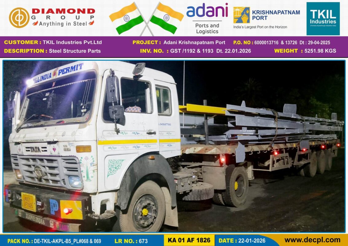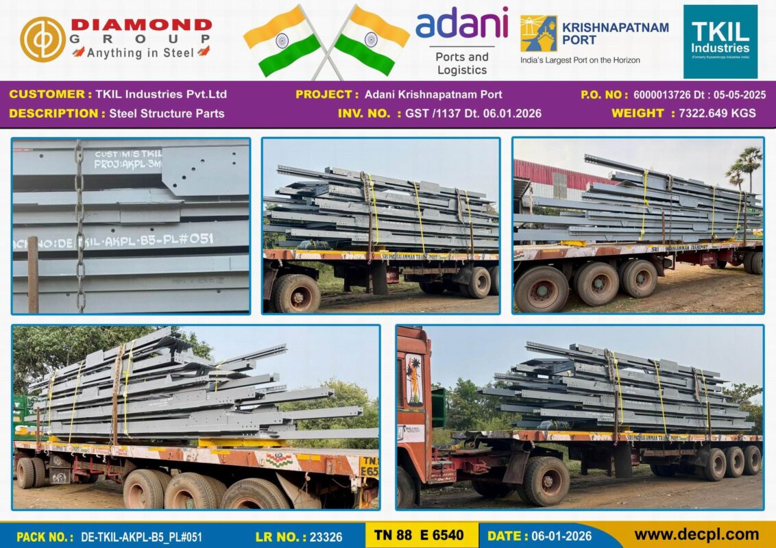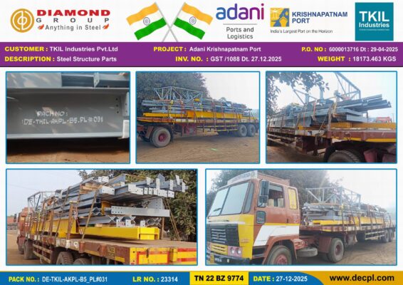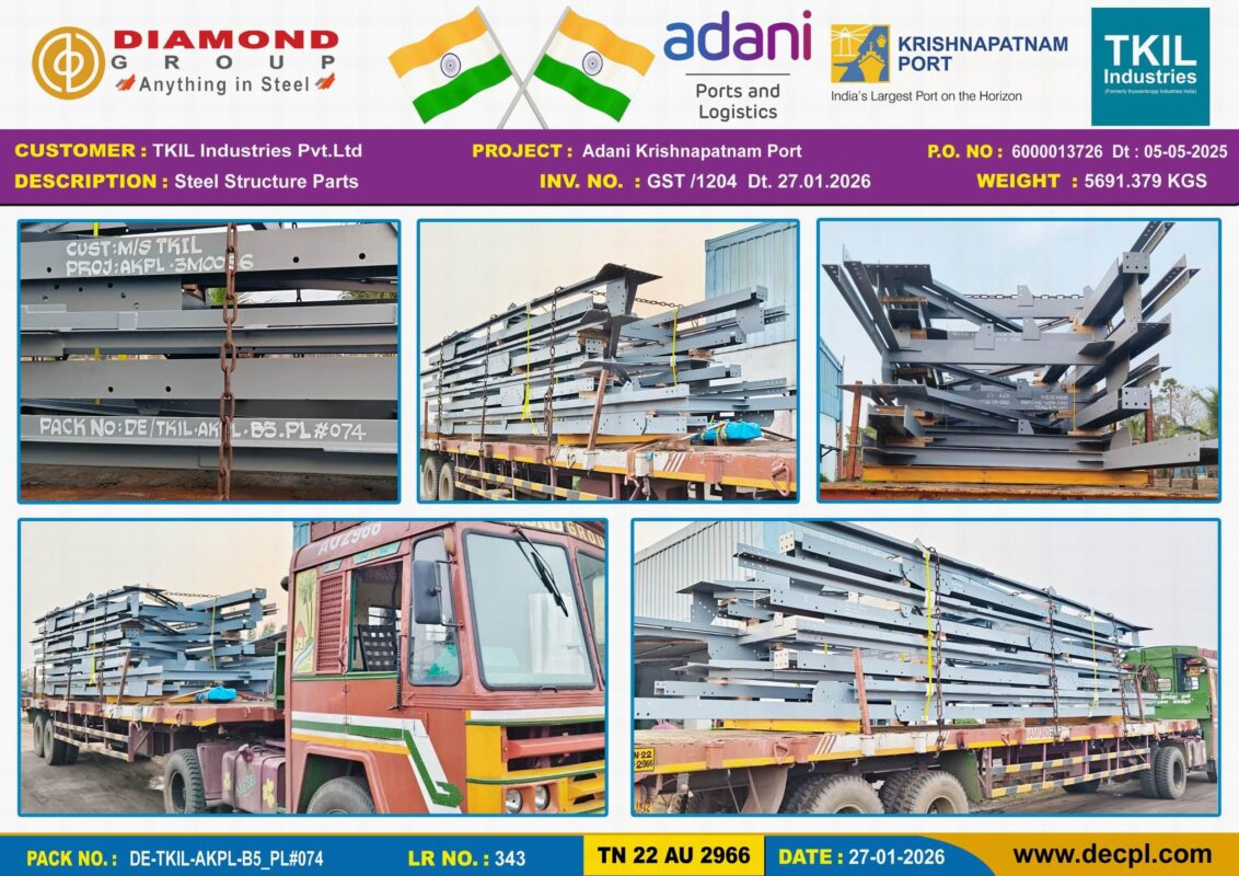 All, Despatches TKIL Industries Pvt Ltd – Adani Krishnapatnam Port – Steel Structure Parts Despatches Posted on February 7, 2026February 7, 2026 by diamond 07 Feb diamond Industrial Visit – SATHYABAMA College of Nursing, Rajiv Gandhi Salai, OMR, Chennai – 600119 on 4th February 2026 Customer Visit SCHADE GmbH – Germany on 12 February 2026