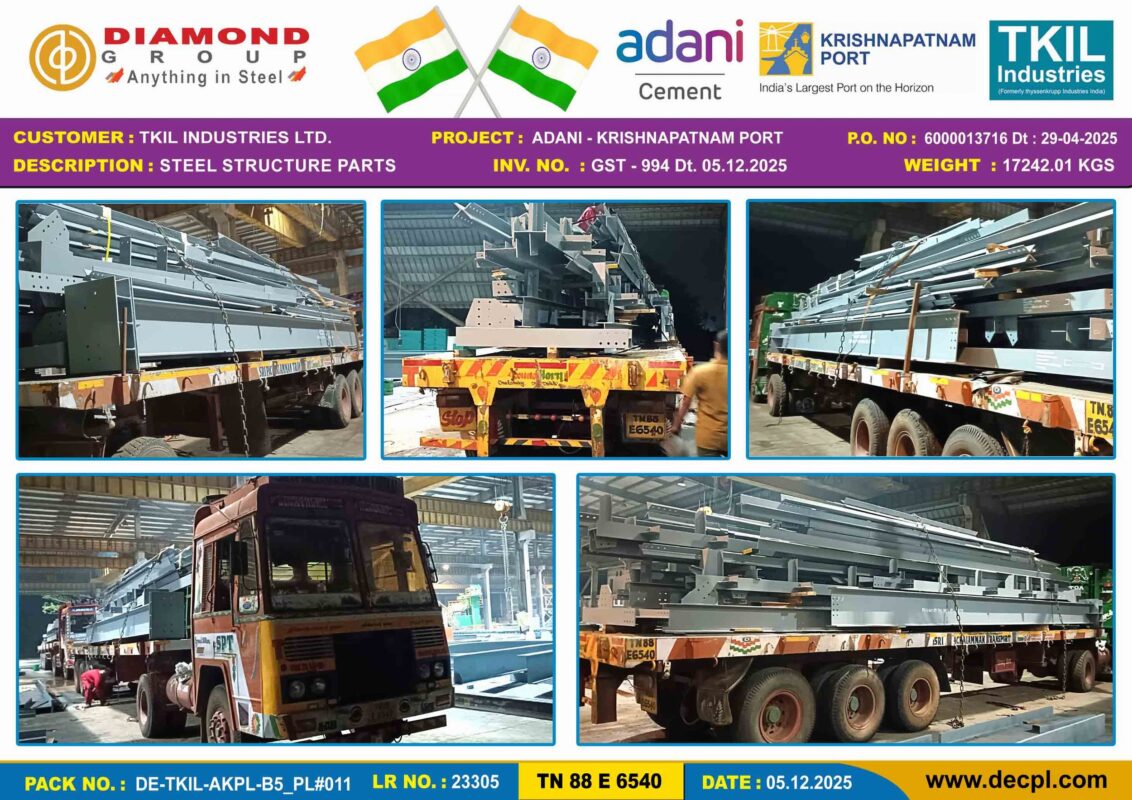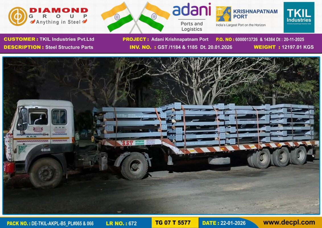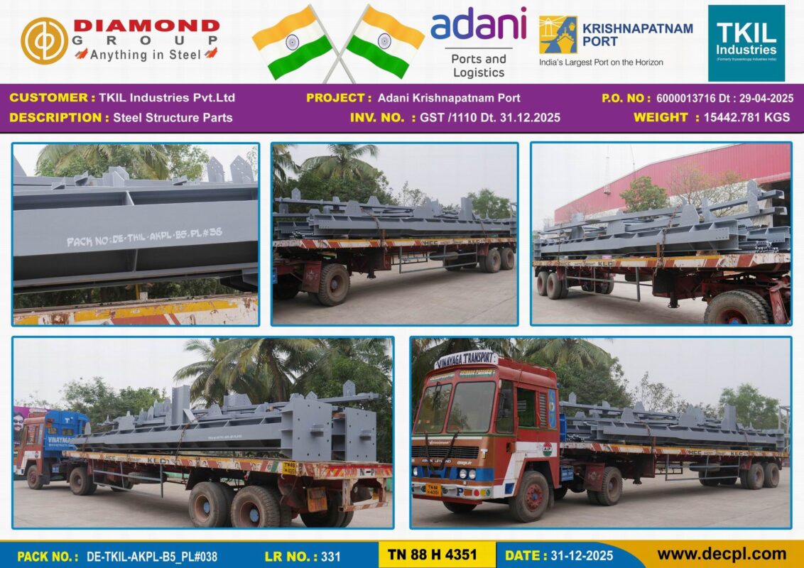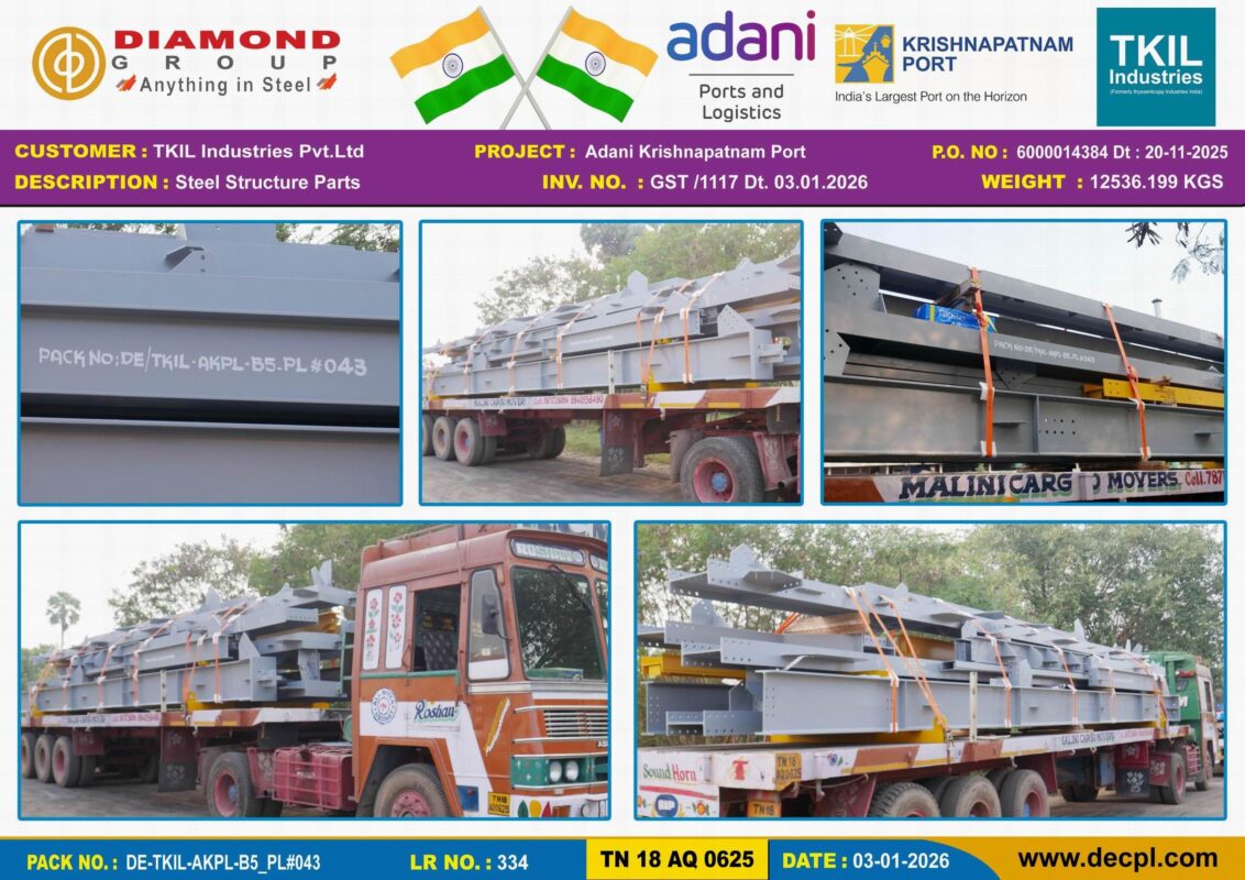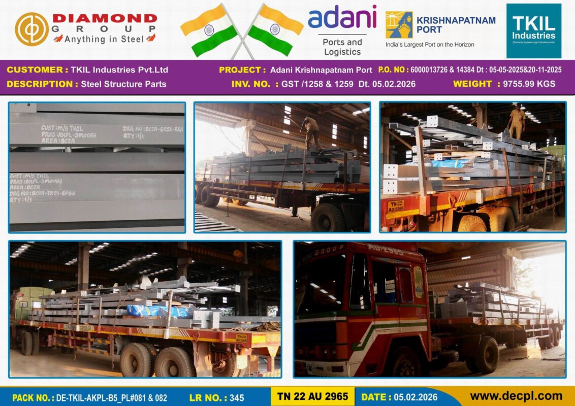 All, Despatches TKIL Industries Pvt Ltd – Adani Krishnapatnam Port – Steel Structure Parts Despatches Posted on February 7, 2026February 7, 2026 by diamond 07 Feb diamond Industrial Visit – SATHYABAMA College of Nursing, Rajiv Gandhi Salai, OMR, Chennai – 600119 on 4th February 2026 Customer Visit SCHADE GmbH – Germany on 12 February 2026