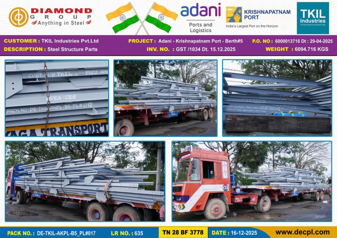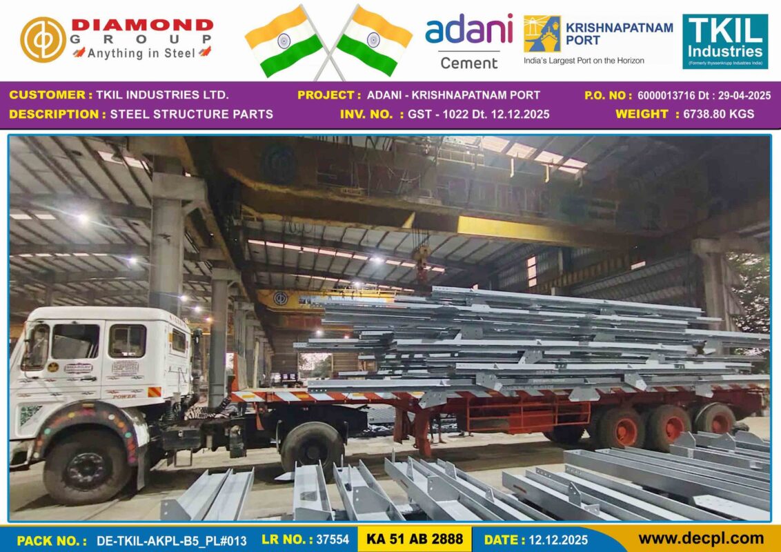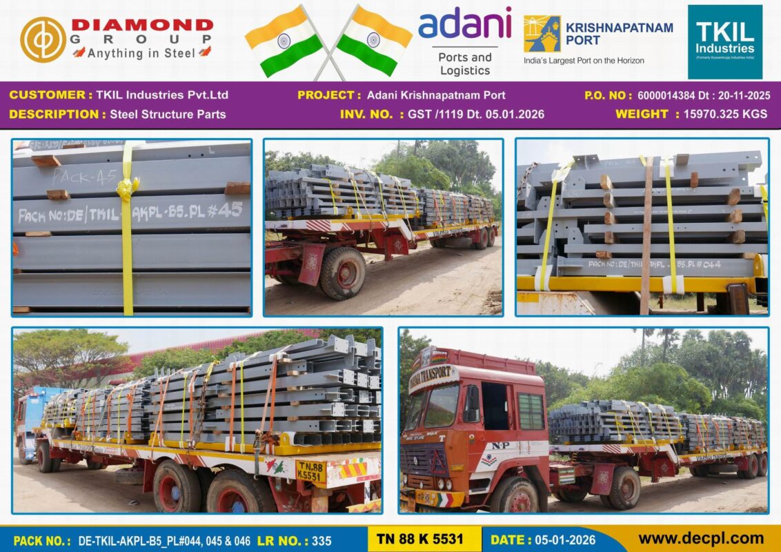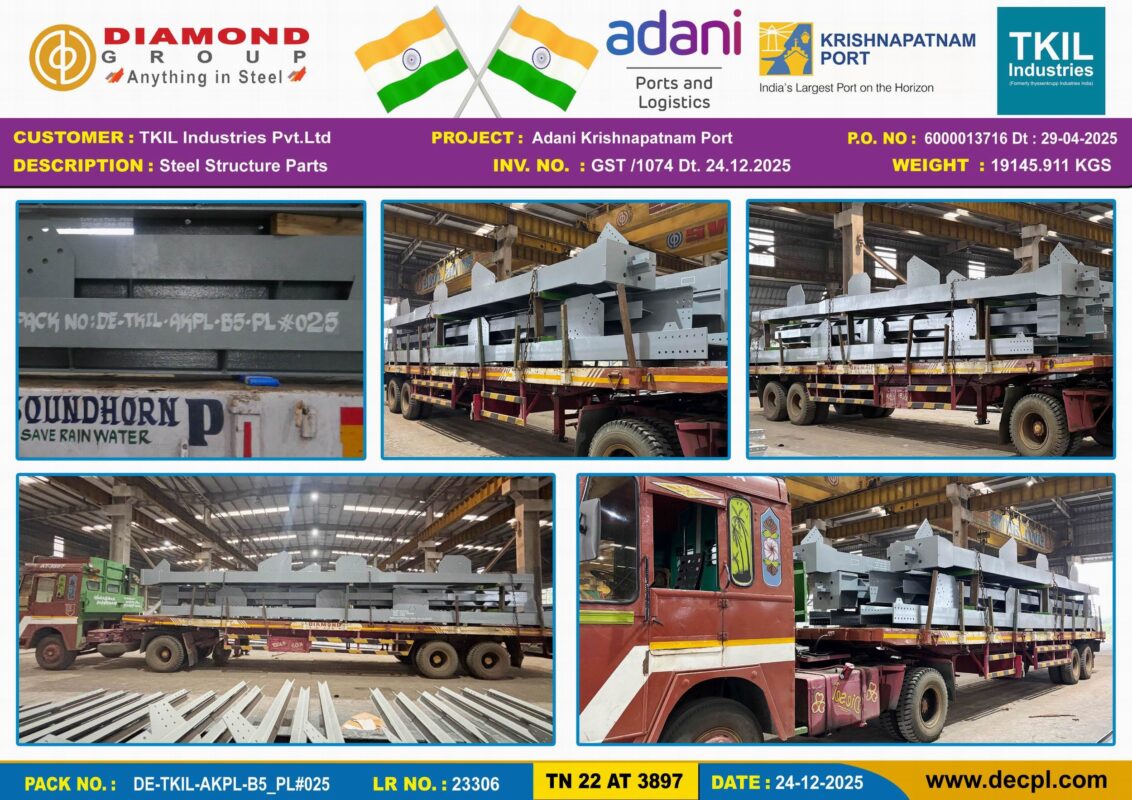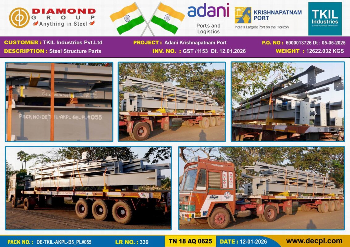All, Despatches TKIL Industries Pvt Ltd – Adani Krishnapatnam Port – Steel Structure Parts Despatches Posted on February 7, 2026February 7, 2026 by diamond 07 Feb diamond Industrial Visit – SATHYABAMA College of Nursing, Rajiv Gandhi Salai, OMR, Chennai – 600119 on 4th February 2026 Customer Visit SCHADE GmbH – Germany on 12 February 2026